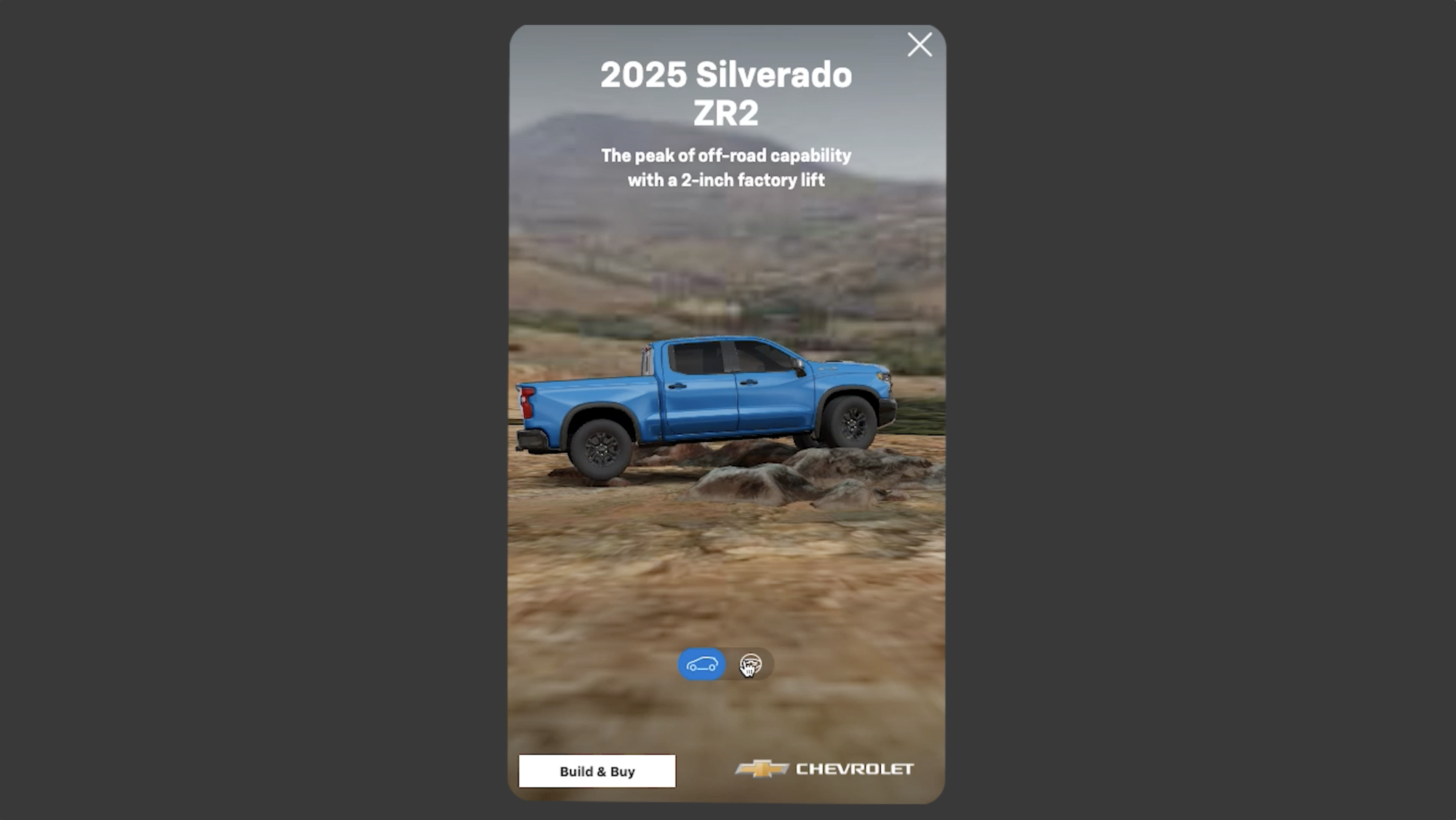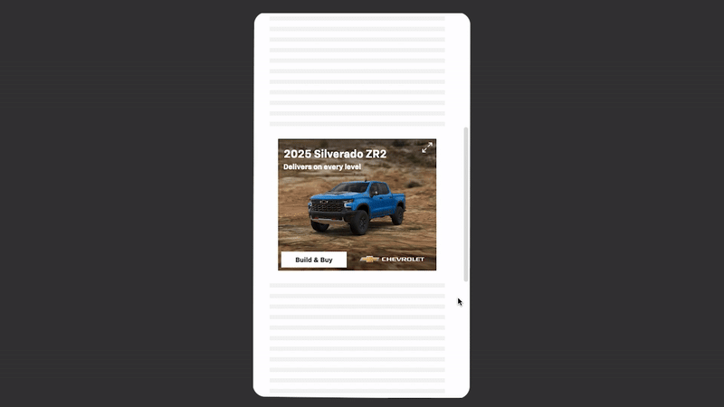In late 2024, I developed these Google Swirl units for the 2025 Chevrolet Silverado ZR2. Swirl ads use layered 3D interactions—scroll, rotate, expand, focus—to progressively reveal product features.