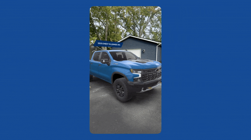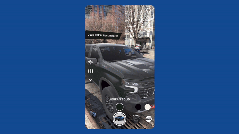 Built with Meta Spark Studio, this series of AR filters was created to showcase Chevrolet's vibrant personality on Instagram and Facebook. Aimed at young, tech-savvy adults, the filters allow users to interact with the brand, view real-scale vehicles in their own environment, and share the experience with family and friends.